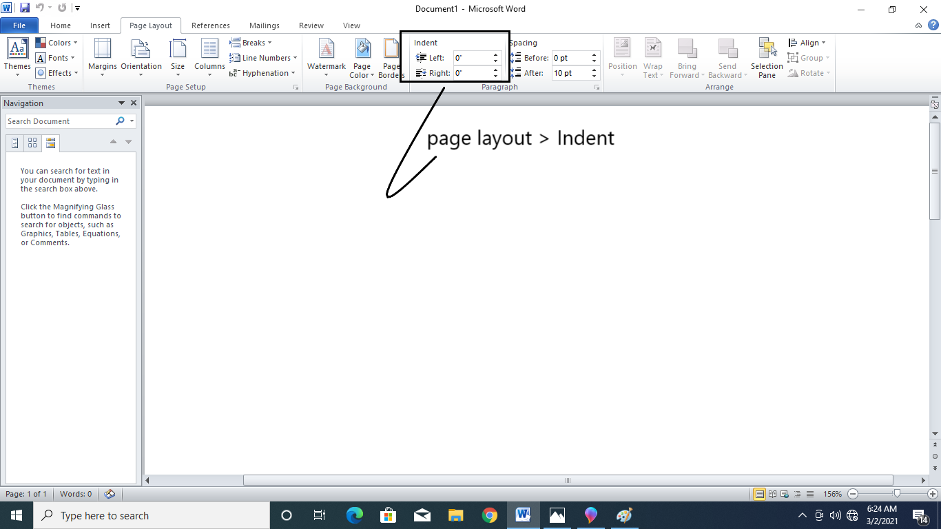 If you want to indent first line in any paragraph then, you can do it simply with a Tab key. Place you cursor at the beginning of the paragraph and press Tab key. It give you an indent of 1.5 inch.