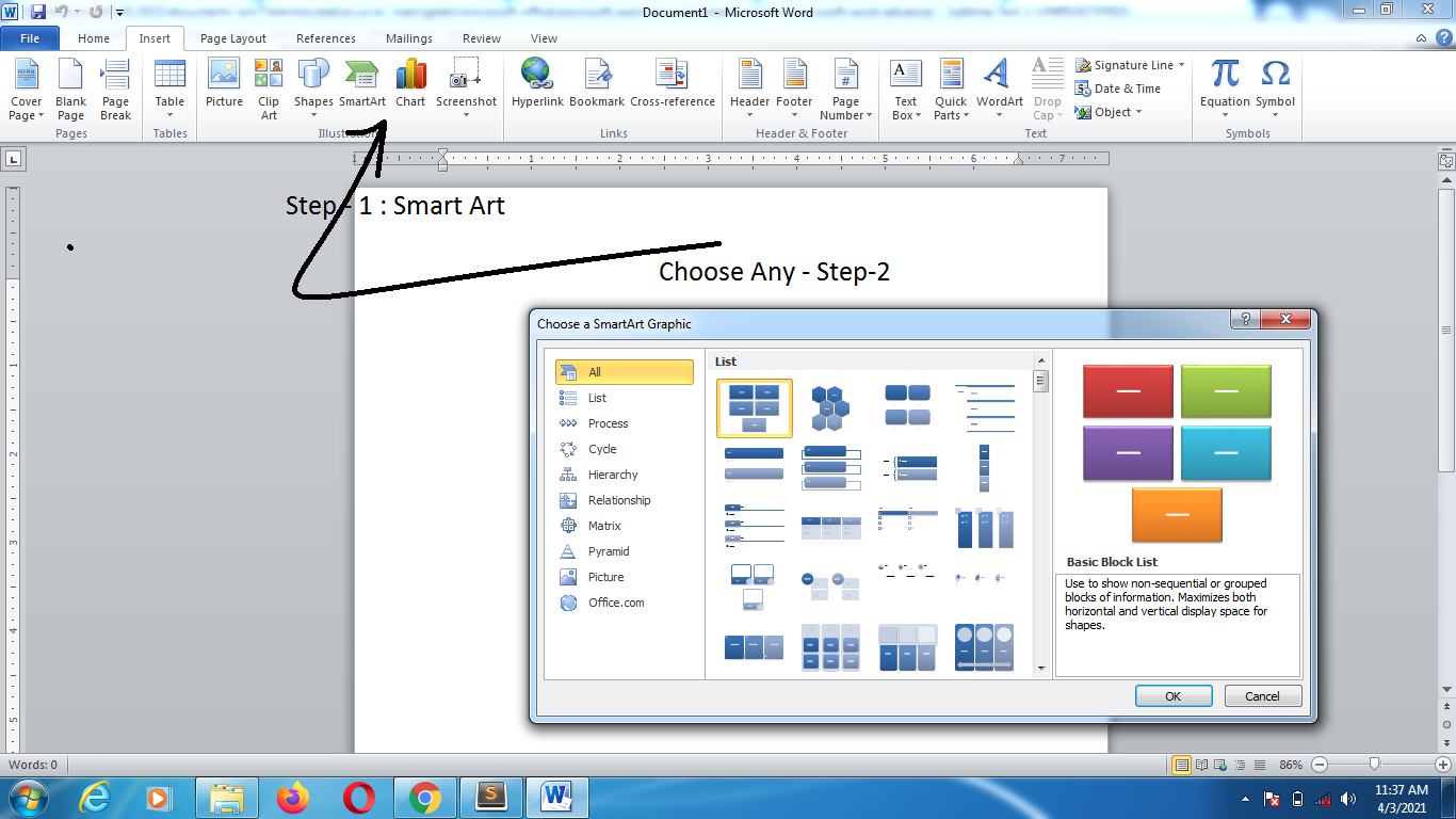 SmartArt is again a very nice tool of Word, which allow you to use graphics instead of text to communicate with reader who is reading your document. So it’s a good tool which make your document friendly to read.